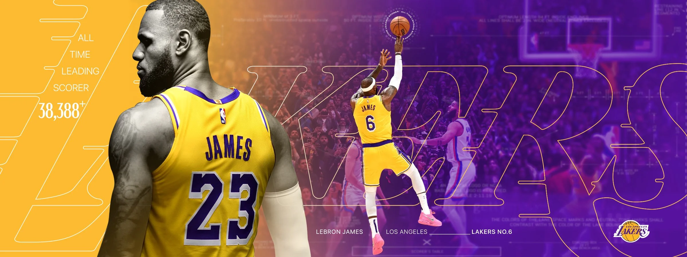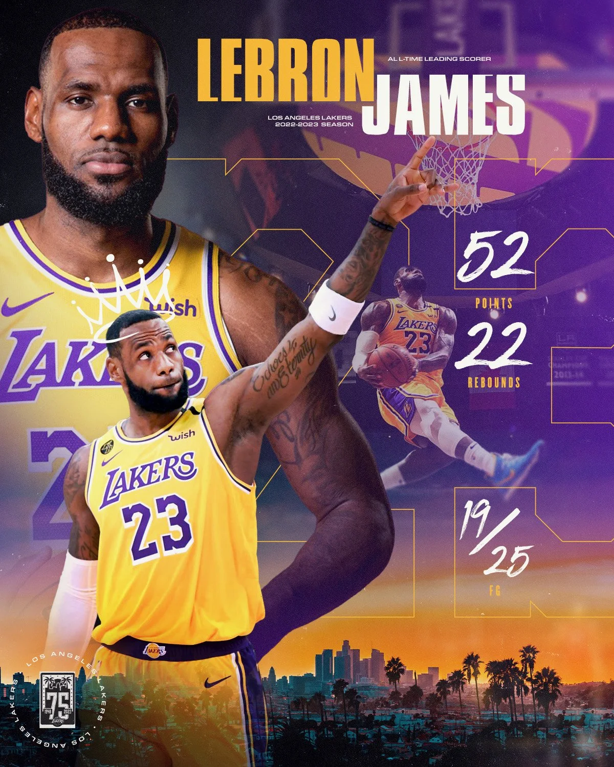 Art created to commemorate LeBron James becoming the NBA’s all-time leading scorer—celebratingthe milestone with a tribute to both his legacy and the Los Angeles Lakers.